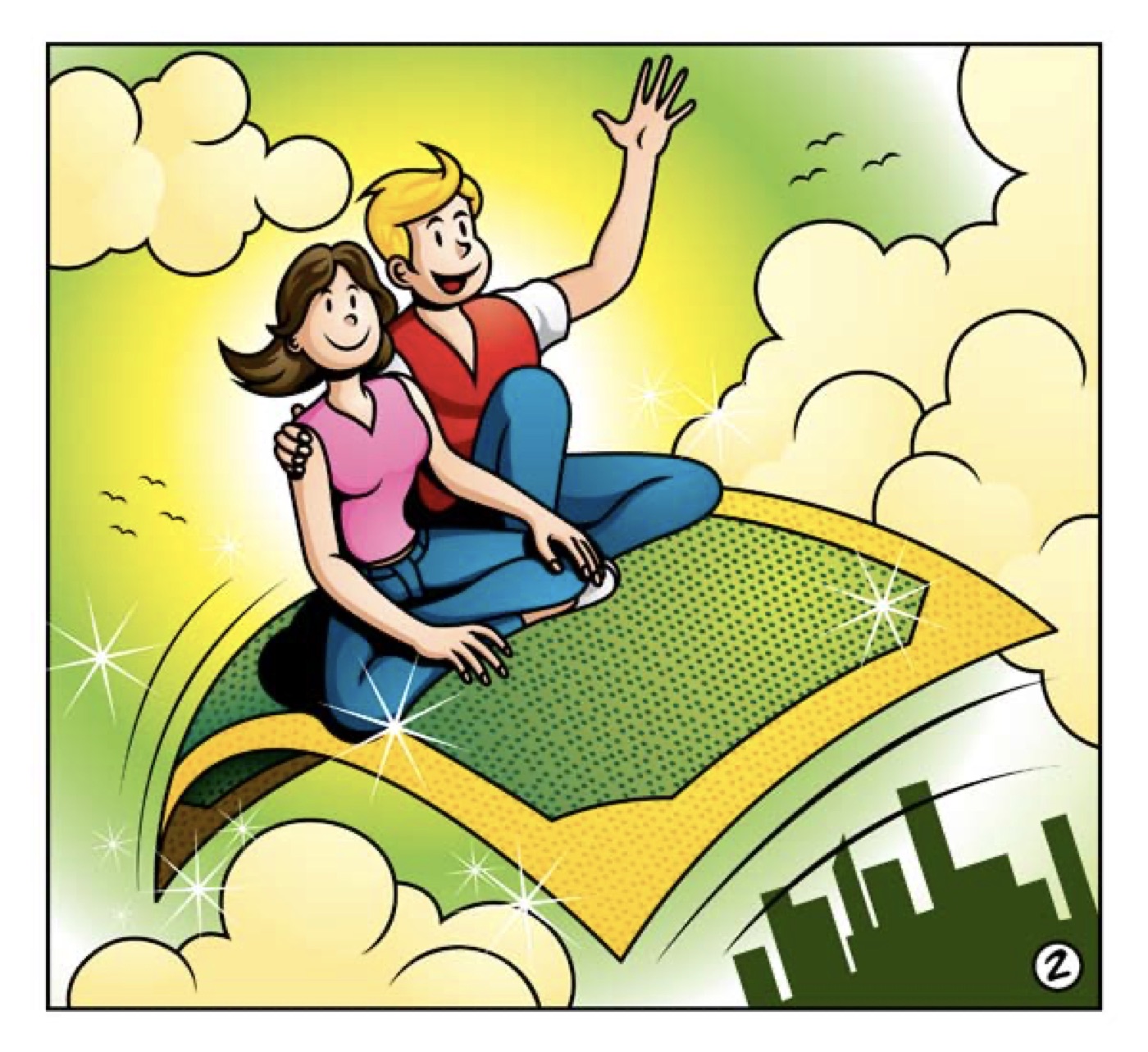 Every issue is a real adventure. Sketched by a former Archie Comics artist and colored by a Disney illustrator — two legends of American comic art, brought together to tell the story of My Way Carpet. Flip through the back issues, then read the strips (toggle between the sketch and the finished color on every panel).